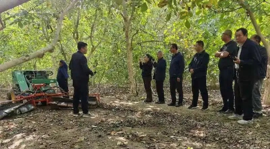近日,新疆核桃产业技术体系在温宿县木本粮油林场成功举办了一场核桃新装备试验演示活动,标志着核桃采收机械研发取得了显著新进展。此次活动由核桃产业技术体系机械加工示范岗——霍尔果斯新科机械有限公司协办,邀请阿克苏地区林业技术推广服务中心、温宿县林业和草原局、宝圆果业有限责任公司、塔格拉克生态农业有限责任公司等相关单位50余名专家、管理人员、企业及合作社代表和果农前来观摩。