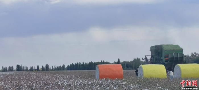 “记者在现场所见,一台自走式打包采棉机,仅用时2分钟左右,就完成了2吨棉花的采摘、压缩和打包,并‘下’出身穿彩色外衣的‘棉花蛋’。”《香港01》详细记录了棉花采收的过程,并写道:“眼见尽是向阳而生、无暇无瑕的大朵棉花,一尘不染。”