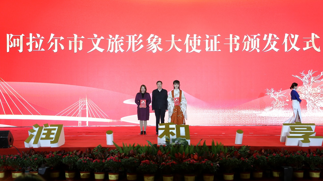活动现场举行了浙江“引客入阿”旅行社联盟、新疆全域自驾游服务体系旅游联盟、五省(市)援疆指挥部旅游援疆合作、第一师阿拉尔市文物保护利用项目投资意向、阿拉尔塔河源景区委托经营运营合作开发投资意向签约,为阿拉尔市文旅形象大使颁发证书,长龙航空阿拉尔号亮相发布和文旅推介活动。