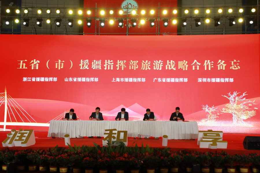 五省(市)援疆指挥部旅游援疆合作签约现场。阿迪力·艾尼 摄