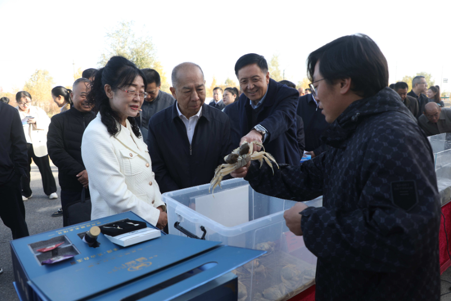 现场观摩职工养殖的白玉蟹。林国强摄