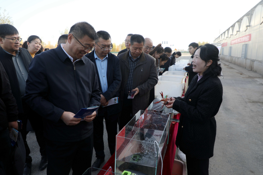 与会代表现场观摩职工养殖的小龙虾。林国强摄