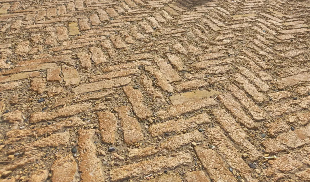 红砖呈“人”字形排列