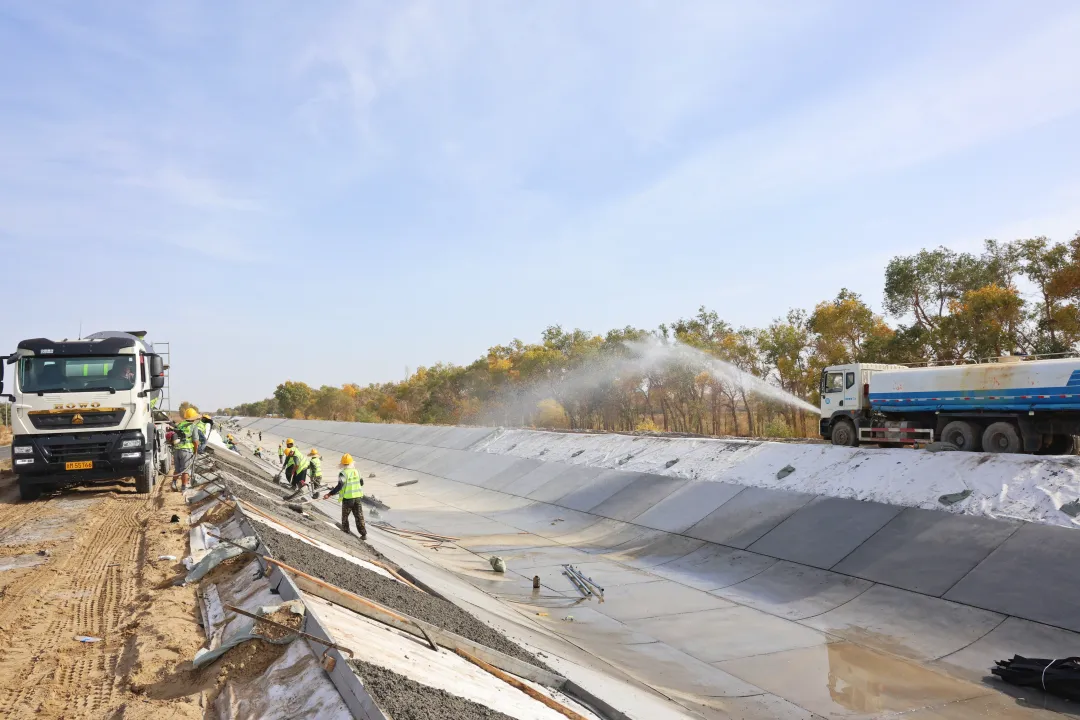 10月12日,在恰铁干渠引调水工程现场,工程机械的轰鸣声不绝于耳,施工人员正忙着进行渠道混凝土浇筑、聚氨酯勾缝等作业,全力确保恰铁干渠引调水工程安全有序进行。