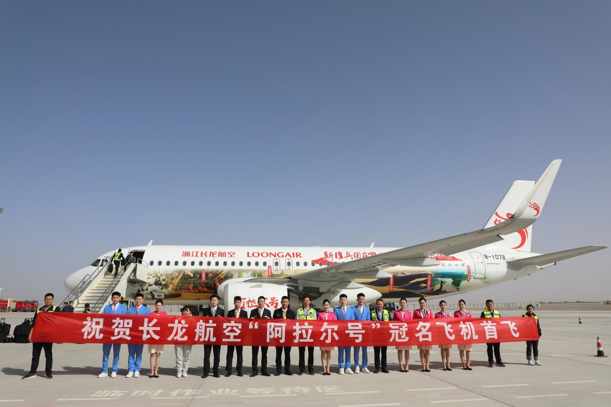 10月22日,是一个值得铭记的日子。上午10时30分,在新疆兵团第一师阿拉尔市塔里木金秋文化旅游系列活动开幕式上,举行了长龙航空“阿拉尔号”航班发布仪式。当天,“阿拉尔号”从杭州首飞抵达阿拉尔塔里木机场。