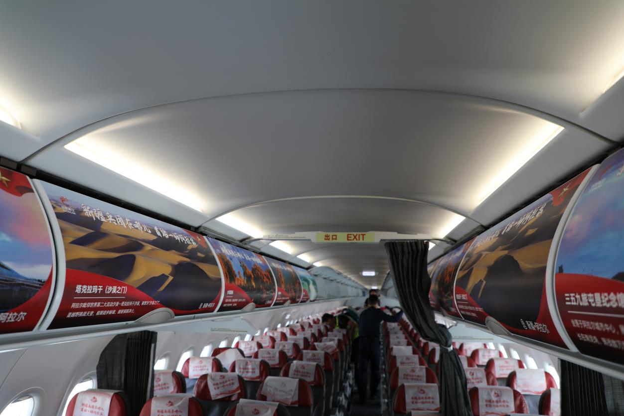 当天,记者在“阿拉尔号”航班上发现,机舱内精心布置的座椅片头、小桌板、行李架盖板及登机牌等,充满了师市的旅游特色,让每一位乘客在踏入机舱的瞬间,就仿佛开启了一场关于阿拉尔的奇妙之旅。