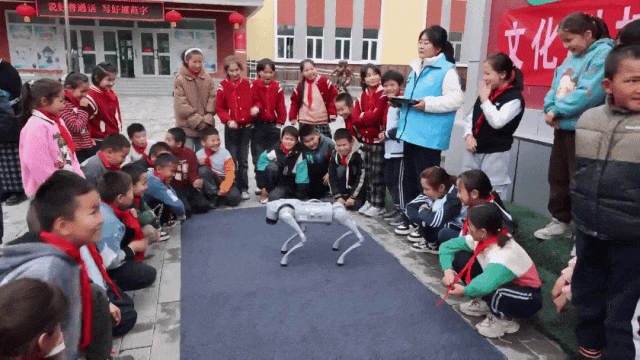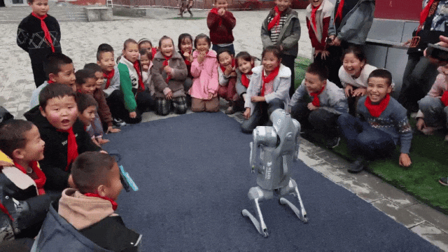 随着活动的深入开展,一曲熟悉的《孤勇者》响起,瞬间点燃了孩子们的热情,网红“四足机器狗”的展演,更是引得学生赞不绝口,握手、前扑、比画爱心、前空翻、跳舞等绝技表演,让同学们真真实实地看到国家科技的进步,为他们埋下“科技兴国”的种子。