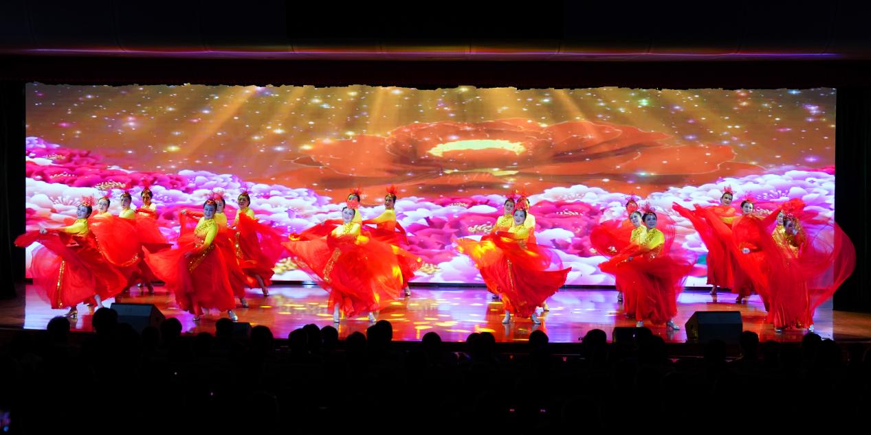 新疆老年开放大学阿克苏分校学员表演的开场舞《花开中国》