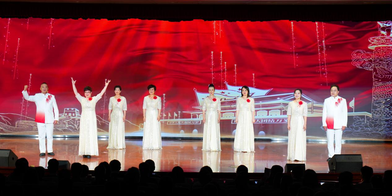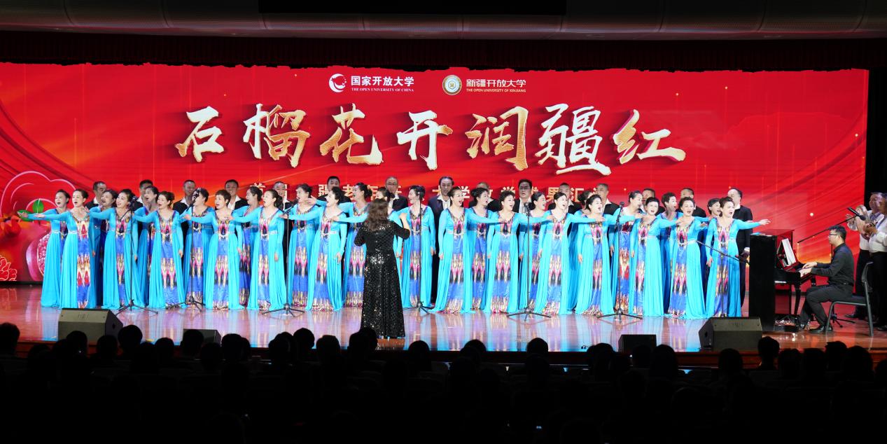 新疆老年开放大学校本部学员表演的合唱《新疆好》《国家开放大学校歌》