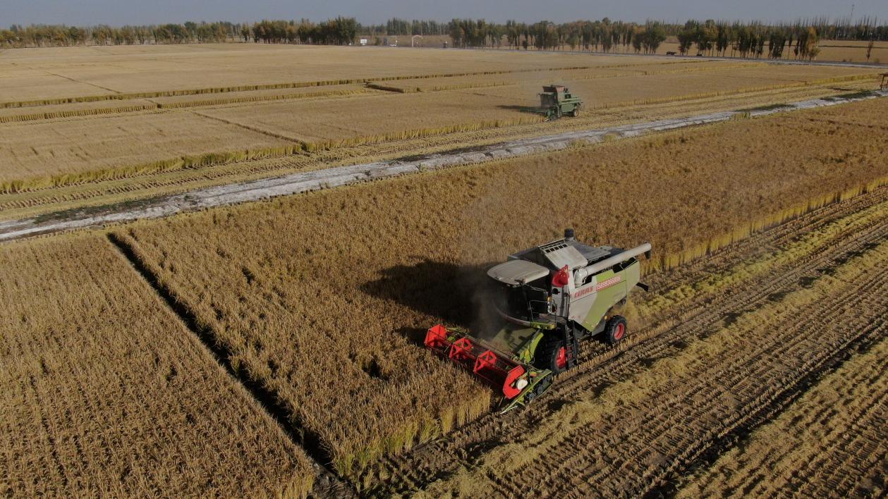 阿拉尔市金色沙垦农业发展有限公司董事长杨俊介绍:“我们的亩产量基本稳定在600公斤以内,水稻长势良好,今年的品质也很好。”