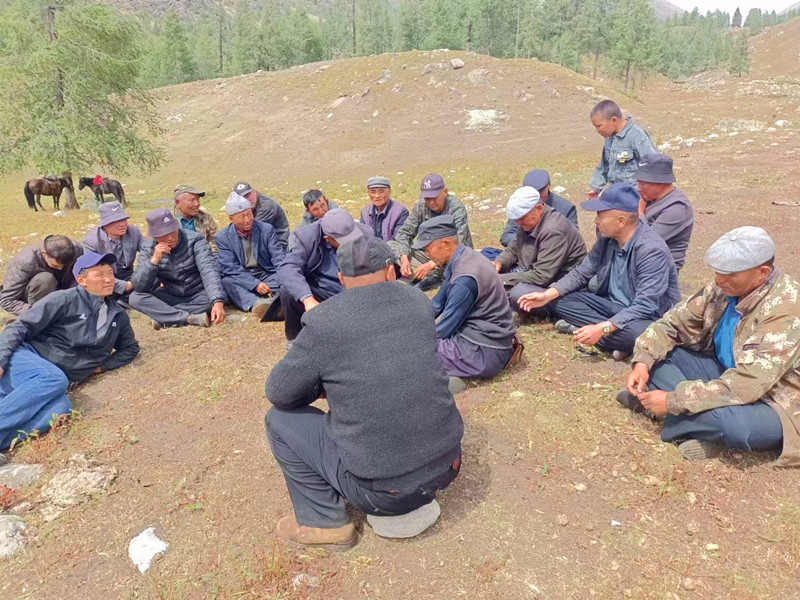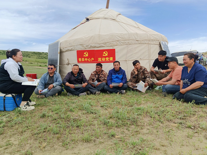 (分管牧区领导、党员中心户正在向牧区群众宣传党的二十届全会精神)