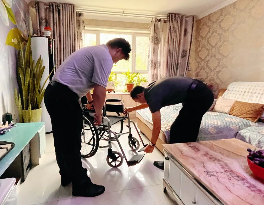 师市残联工作人员为残疾人家庭安装轮椅。(资料图)