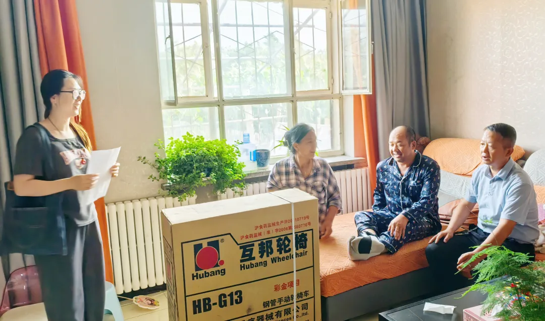 师市残联工作人员为二十七团职工发放轮椅(资料图)