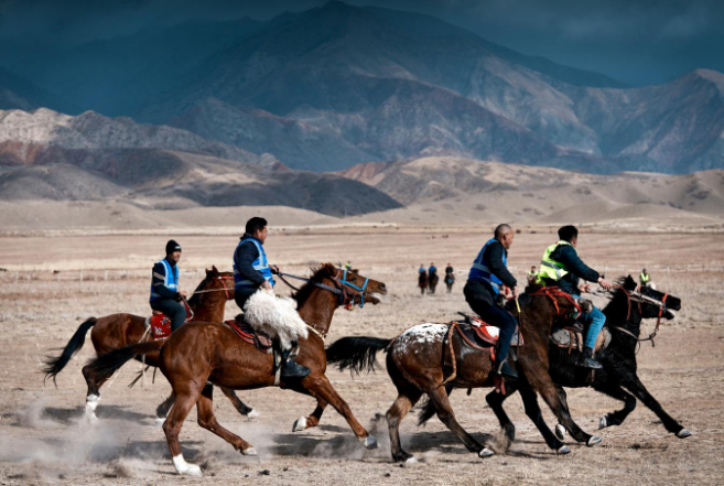 温宿县博孜墩乡牧民参加叼羊比赛(资料图)