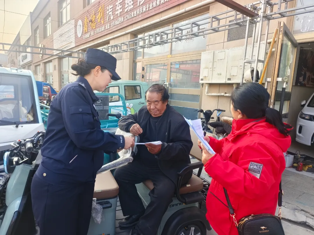11月5日,沙湾市书香街道城东社区组织社区志愿者和社区警务室民警联合开展反电信诈骗宣传活动。