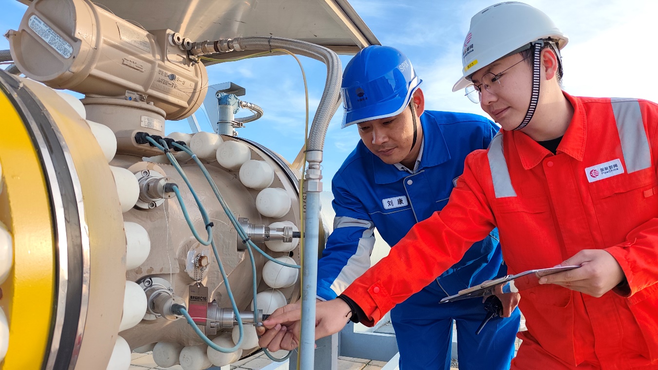 图为2024年11月霍尔果斯作业区计量工程师在开展进口天然气计量监管。陈文杰 摄