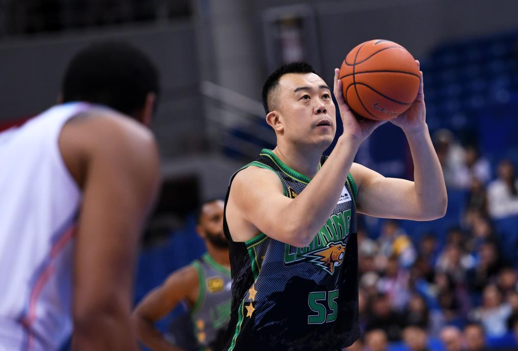 11月17日,辽宁本钢队球员韩德君在比赛中罚球。新华社记者 李紫恒 摄