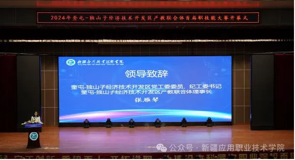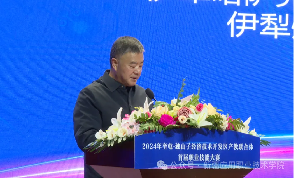 奎屯-独山子经济技术开发区党工委委员、纪工委书记、奎屯-独山子经济技术开发区产教联合体理事长张雁琴,伊犁哈萨克自治州人力资源和社会保障局伊犁州职业技能鉴定中心主任陈旭光分别进行致辞。