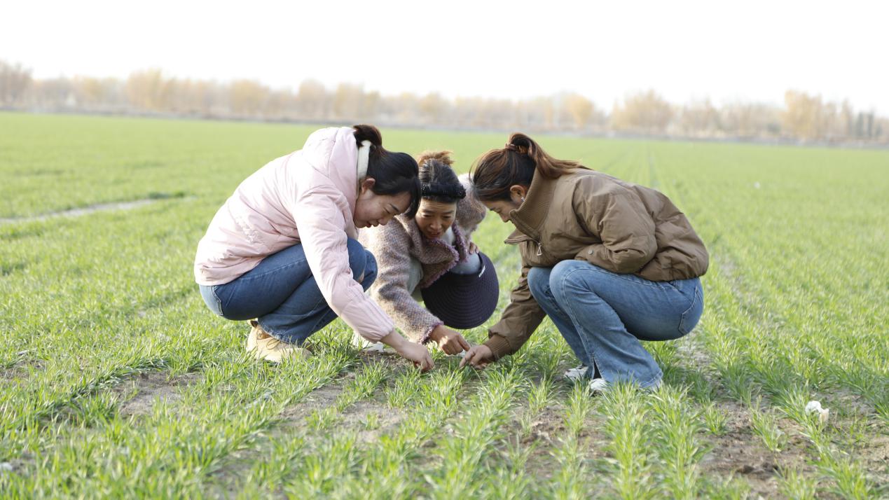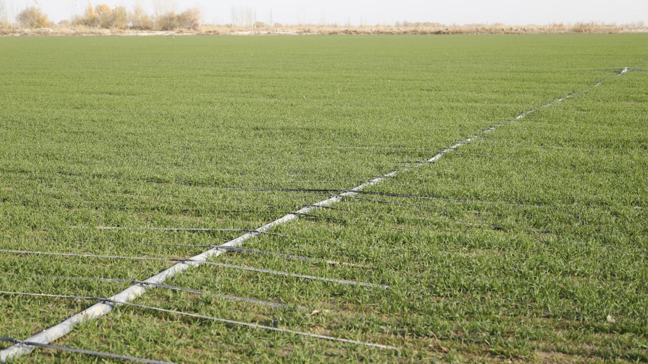 滴灌带正在给冬小麦灌水。宋冰 摄