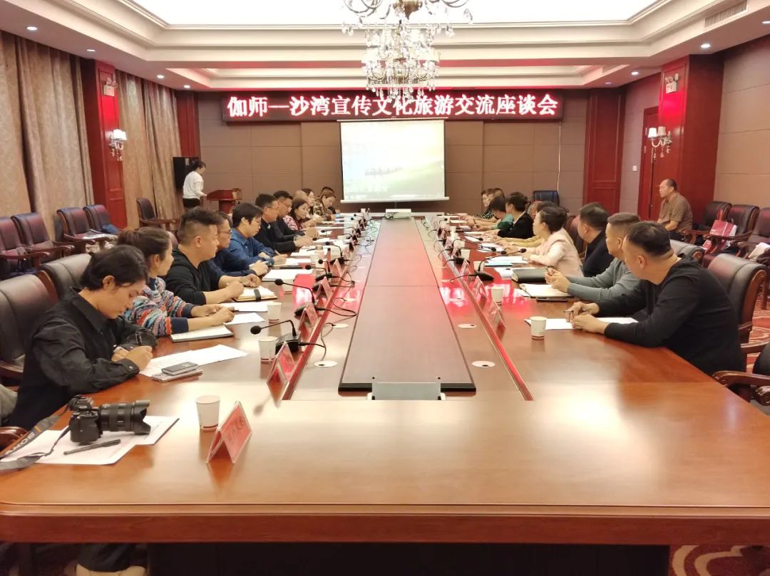 在交流座谈会上,双方就文旅深度融合达成共识,表示将立足两地旅游资源,在文旅融合发展、精品旅游线路开发上深度合作,实现市场共创,优势互补。随后,观看了伽师县、沙湾市文旅宣传片。伽师县、沙湾市文旅局负责人各自就县域基本情况、文旅资源、文旅产业发展情况进行了介绍。两地融媒体中心负责人分别就媒体融合发展理念创新、平台建设、新闻宣传等方面进行了交流发言。
