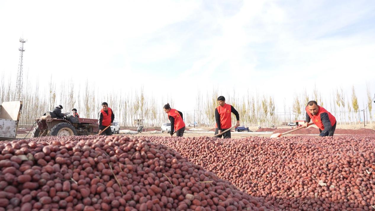 近年来,麦盖提县积极发展乡村特色产业,不断延伸红枣产业链,加大特色农副产品企业招商引资力度,依托麦盖提县红枣产业园和完善的红枣加工体系,让红枣产业成为麦盖提县群众致富增收的支柱产业之一。