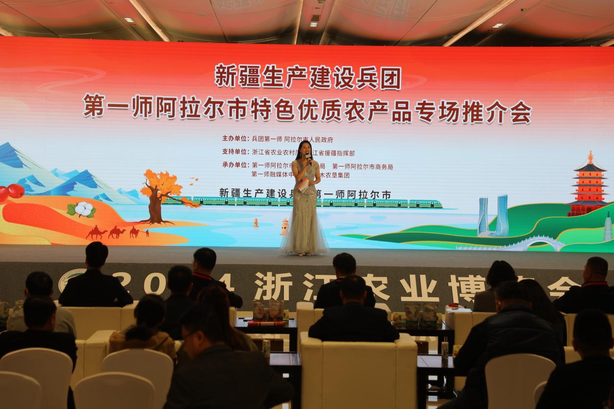 11月22日,新疆兵团第一师阿拉尔市特色农产品推介会在杭州国际博览中心举行,充分利用浙江农业博览会平台,促进第一师阿拉尔市农产品销售,实现产销精准对接,通过招商引资推介会,吸引外部资本投资农业及相关产业,进一步推动师市经济高质量发展。