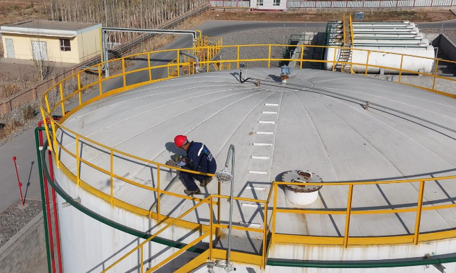 步入企业厂区,现代化工业的气息扑面而来。先进的生产设备整齐排列,彰显科技实力;林立的储罐静静矗立,承载着企业的能源希望;自动智能化的控制系统犹如智慧大脑,高效精准地掌控着每一个环节的安全运行。新疆巨友新能源科技有限公司总经理刘延年介绍,目前我们看到的这一块是我们的储存区域,储罐区涉及到我们的原料、我们的产品,储罐三区是我们储存的添加剂,总储存能力是1万立方。这一块,我们看到的是我们的全自动的装车台。我们有两套全自动系统,紧急切断系统、液下装车,它伴有防静电防溢流设施。