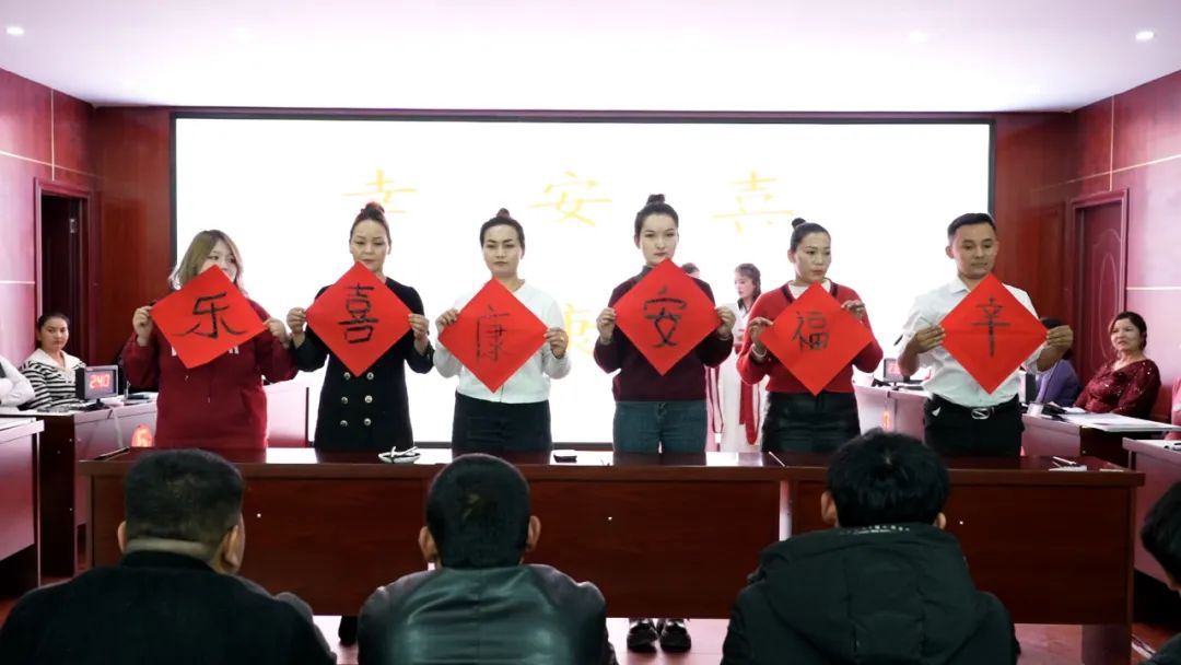 竞赛环节结束后,每个参赛队各派出了一名代表使用毛笔分别书写了“幸福安康喜乐”六个大字,为在场的所有人送上美好的祝福。