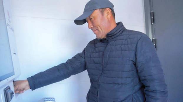 太来提·赛尔山来自哈萨克斯坦雅尔肯特市,2016年就在合作中心工作,先后从事邮递员、打包人、餐厅服务员等职业,经常需要兑换人民币,自连接通道设立兑换机后,他的工作和生活更方便了。