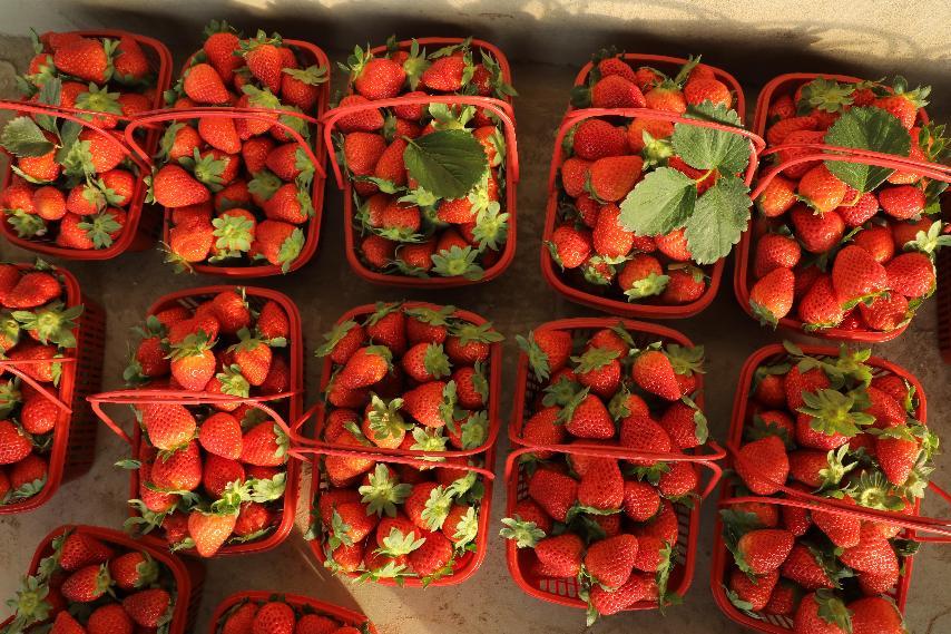 刚采摘下来准备送往销售点的草莓。王静茹 摄