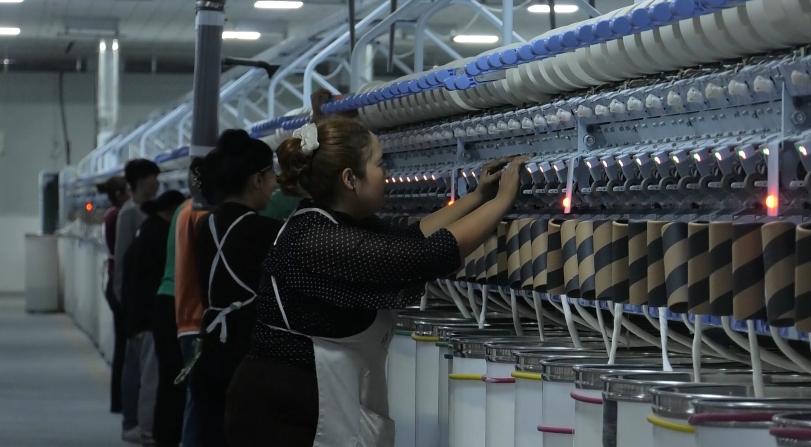 新疆华盛纺织科技有限公司员工夏热帕提·吾布力说道:“2024年4月,我通过麦盖提县人力资源和社会保障局组织的招聘会,来到这个纺织厂上班,每个月工资是2800元,福利待遇特别好,包吃还包住。”
