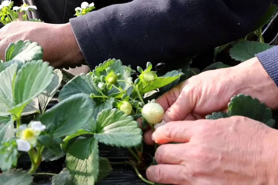 大棚草莓已经坐果。