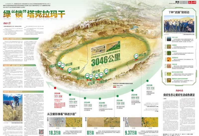 这一刻,3046公里的绿色生态屏障首次合围有着“死亡之海”之称的塔克拉玛干沙漠。
