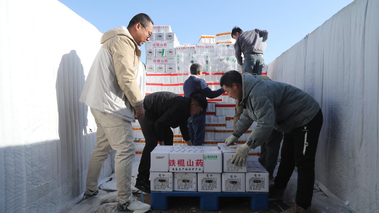 供销疆源公司员工在卸车。石继良 摄