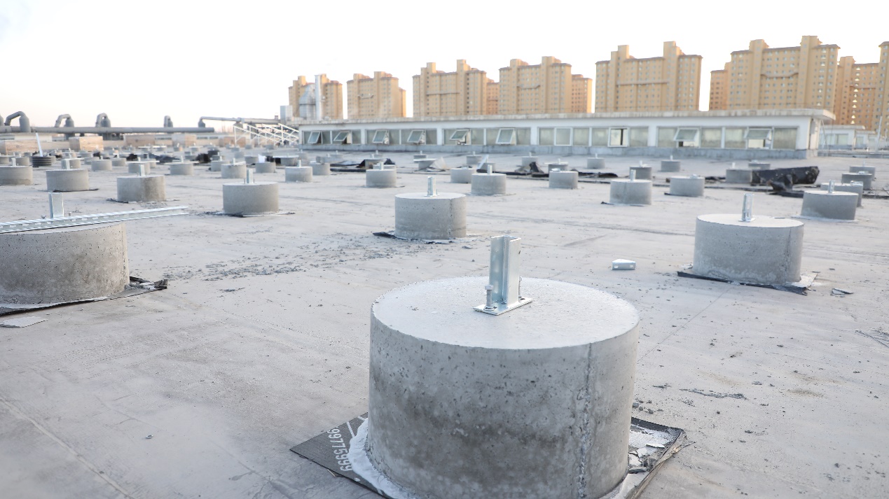 第一师阿拉尔市3.63兆瓦屋面分布式光伏发电项目基础部分已施工完成。黄月天 摄