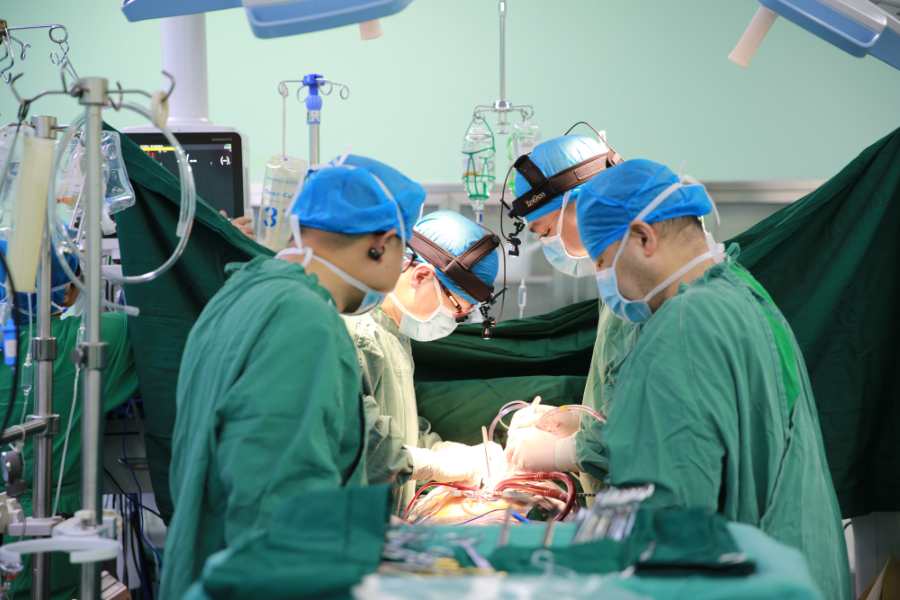 11月8日,新疆生产建设兵团第一师医院手术室内,浙江大学医学院附属第一医院(以下简称浙大一院)心脏大血管外科副主任、心脏移植中心副主任赵海格团队联合第一师医院胸腔外科、麻醉科、超声科、手术室等相关科室医护人员,成功为3名患者开展一站式“复杂心血管外科手术”,为第一师医院重启心脏外科,迈上又一“心”高峰。