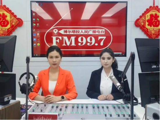 图为博尔塔拉广播电视台“997”说法栏目直播间开展宪法知识宣讲。