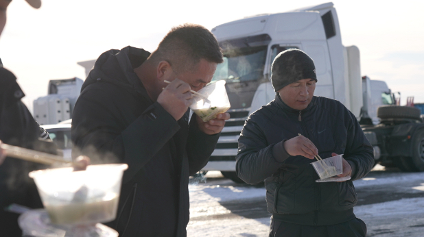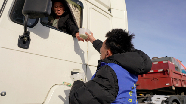 当日下午,志愿者们还前往霍尔果斯公路口岸、第六代国门等地,为商品车及货车司机送去温暖,让他们在寒冷的冬日感受到浓浓的关怀。“我当摆渡人5个月了,背包里装的都是馕和面包,路上方便吃,感谢社区一直惦记着我们,把热气腾腾的饺子还有‘温暖大礼包’送到我们手上,很感动。”大车司机张伟雄说。