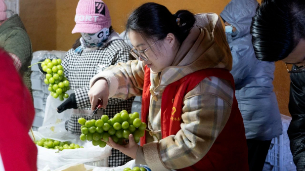 元旦临近,果农在保鲜库储存的葡萄也迎来错峰销售的旺季,但普遍存在搬运人手不足的问题。青年志愿者有序分工、配合默契,全身心投入拣货、分装、搬运等工作,展现出团结协作的良好精神风貌。“非常感谢孩子们,有了你们的帮助,我们的葡萄就能在元旦前运到市场上进行销售。”果农李大爷开心地说。