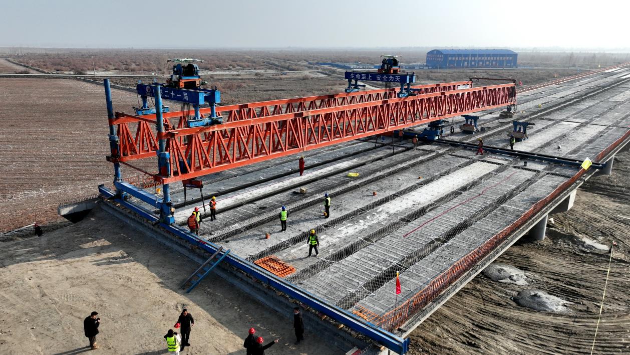 随着冬季低温天气来临,中铁二十一局集团有限公司工程团队在完成箱梁架设后将暂停施工,并利用这段时间筹备防撞护栏模板,有序推进桥面铺装的施工组织工作,为明年桥面系施工全力冲刺做好充分准备。
