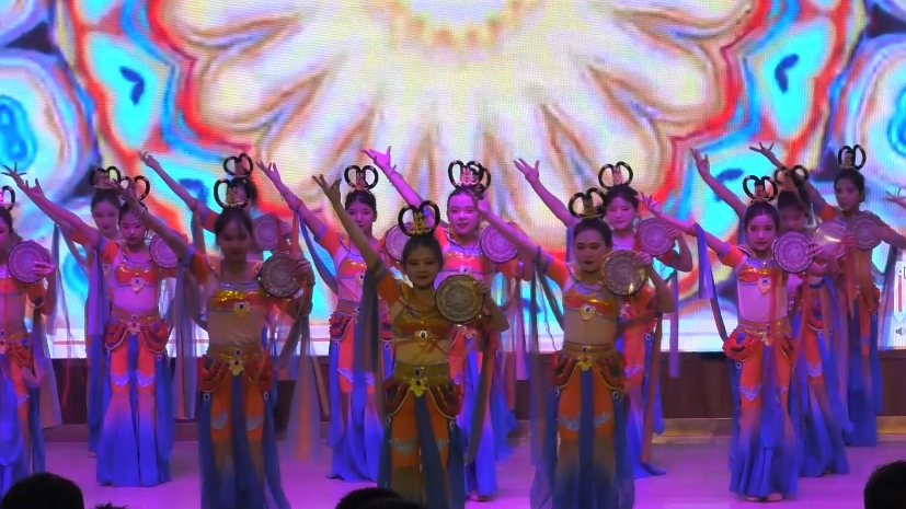 晚会在一支热情洋溢的舞蹈《盛世欢歌》中拉开序幕,学生们身着华丽的服饰,以轻盈的舞姿、欢快的节奏,展现了新时代青少年的蓬勃朝气和青春活力。随后,歌曲、舞台剧、舞蹈、乐器演奏等各类节目也轮番上演,为观众带来了一场场视听盛宴。