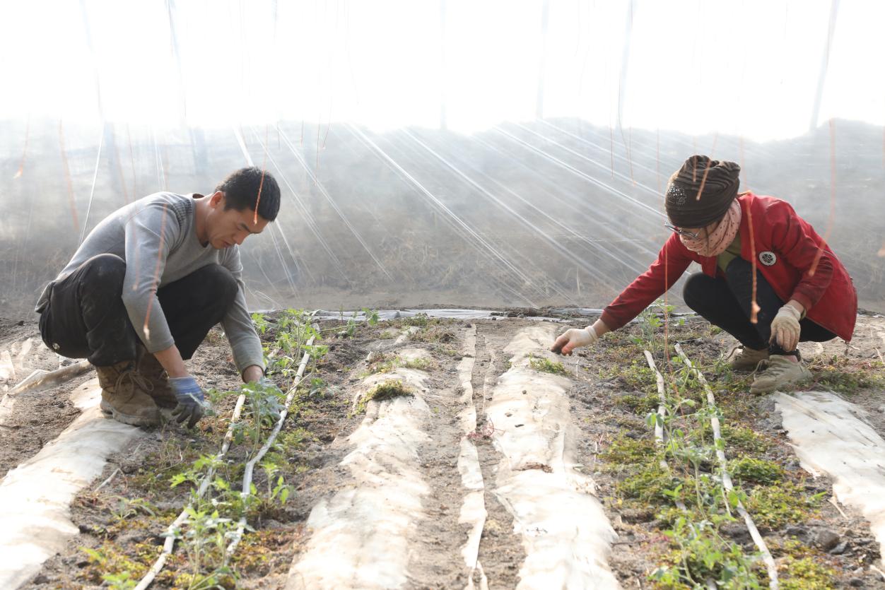靳宝强说:“因为上茬的西红柿产量和价格都不错,所以我们增加了这一茬的种植面积,虽然前两天降雪,大棚内气温降低,出苗比往年慢,但随着天气向好,中午气温略有升高,现在西红柿苗长势很好。”