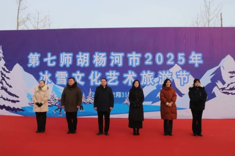 2024年12月31日,七师胡杨河市“胡杨河之春”冰雪文化艺术旅游节在师市祥云湖公园启动。七师副师长吴小平出席活动。