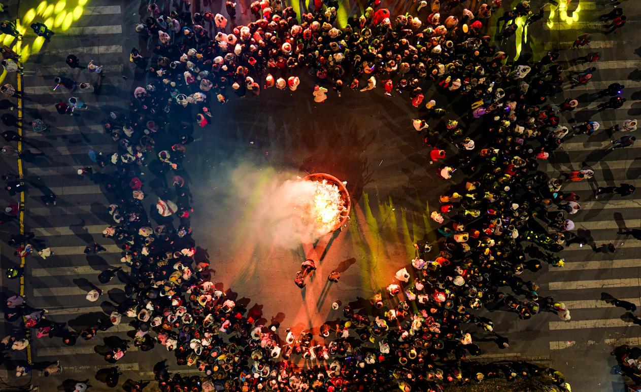 众多市民同放孔明灯,共度跨年不眠之夜,共庆2025年新年的到来。史达 摄