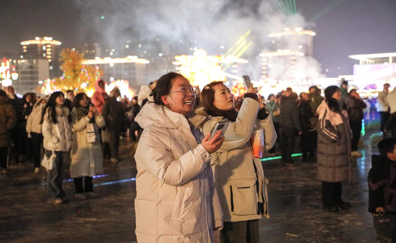 2025年1月1日,阿拉尔市胡杨河滨水公园,跨年活动现场。阿迪力·艾尼 摄