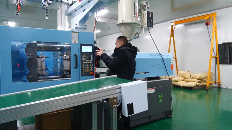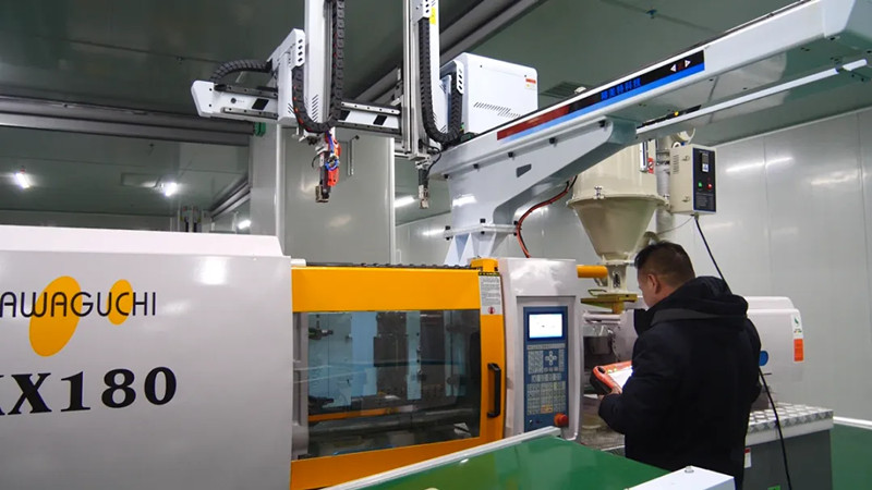 新疆某科技有限公司生产车间厂长卢云说:“我们的生产线及配套设备都是市面上最先进的,只需要一名技术员就可以保证自动注塑生产线顺利进行,添加足够的原材料,将模具放置在设备内,即可完成生产。”