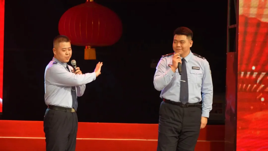 文艺汇演在舞蹈《打起手鼓跳起舞》中正式拉开序幕。演出分为三个篇章,由政法系统干警和家属带来歌伴舞、舞蹈、独唱、情景剧、快板、音诗画舞、歌曲串烧、相声等14个精彩节目。其中,情景剧《警之爱》展现广大公安民(辅)警舍小家顾大家的无私奉献精神;舞蹈《新时代交警风采》展示守护群众出行安全的广大交警活泼的另一面;舞蹈《利剑》向观众展示特警炫酷技能;相声《一本正经的反诈手册》向观众宣传常见诈骗手段。整场演出持续2个小时,通过一个个精彩节目,向观众呈现沙湾市政法干警忠诚履职尽责、勇于担当作为、甘于无私奉献的良好风貌。演出现场气氛热烈,掌声不断。