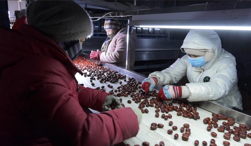 麦盖提县克孜勒阿瓦提乡红色金土地农民专业种植合作社副经理孔美艳说道:“2024年,麦盖提县的红枣取得了大丰收,我们便积极开展收购加工工作。截至目前,我们已经收购3000吨红枣,经过筛选、清洗、分拣后,产品将销售到陕西、广东、河北等地。”