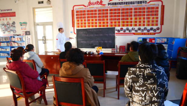 1月2日,在伊车嘎善锡伯族乡伊车嘎善村烹饪技能培训现场,授课老师以“烹饪理论+实际操作”的方式,一边讲解步骤要领,一边演示烹饪过程,对原材料的选购、菜品的搭配、刀工的练习、火候的控制以及出菜装盘的技巧进行了全面系统的讲解。