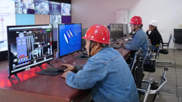 工人正在智慧供热调度指挥中心查看全市供暖情况